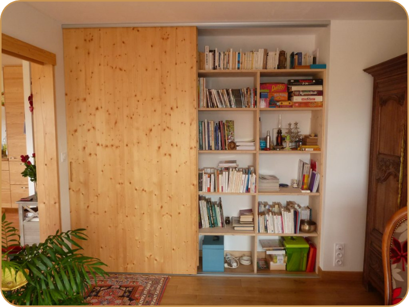 Fabrication de bibliothèques sur mesure en bois massif pour mettre en valeur vos livres et objets. Chaque réalisation est pensée pour s’adapter à votre pièce et apporter une touche unique à votre intérieur.
