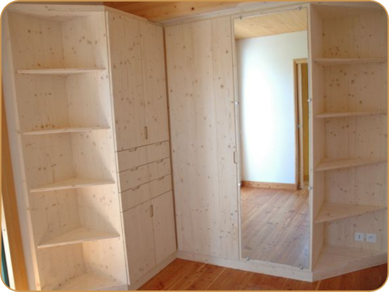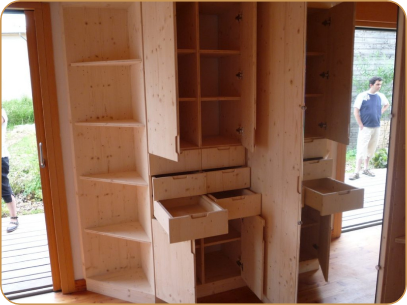 Je réalise des dressings personnalisés en bois massif avec des espaces penderie, étagères et tiroirs adaptés à votre quotidien, afin de créer un rangement pratique, durable et parfaitement intégré à votre intérieur.